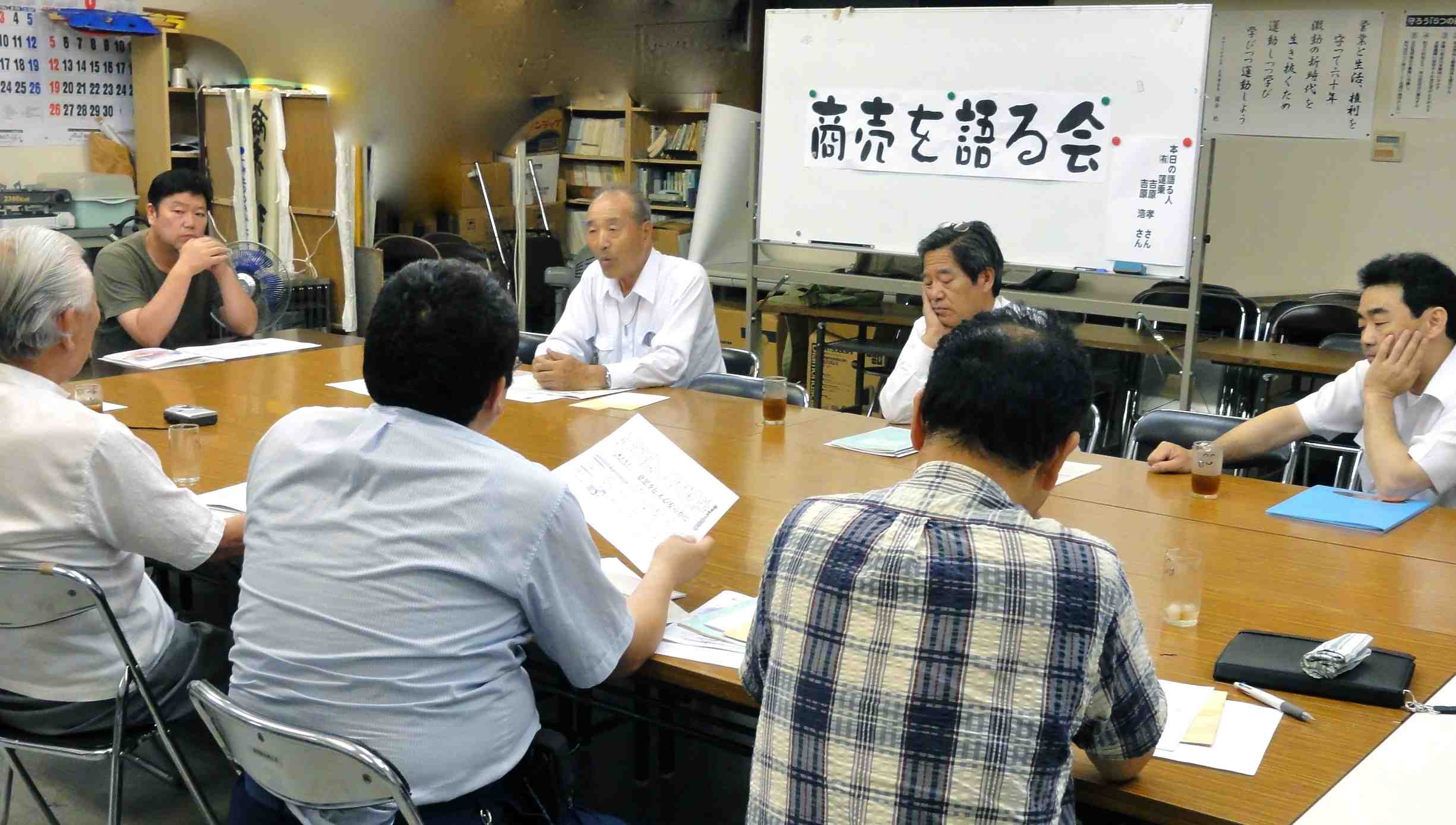 ◆安否確認からカギの付け替えまで お客様は高齢者の世帯が9割を占める。商品(弁当)は、商売抜きにしてすばらしい。管理栄養士が塩分を押さえ、栄養バランスも考えた献立。糖尿病の人が「血糖値が下がった」と教えてくれる。「S病院(公立)の医者からすすめられた」というお客さんも何人かいる。食事と健康は一番密接だから。一人くらしの人には「こんにちは」と声をかけ安否確認をしている。返事が返ってくるとこちらも元気になる。妻もコースを分担しているが、話を聞いてあげると涙を流す人もいる。猫のためにカギをつけたいと言えば、用意して取付ける。 3年前、民商に入会したときの事業計画が、来春まで着々とすすむ見込み。スタッフの増員を今後検討することになるかも。 民商も班会など楽しくなければ発展しない。商売を語り合う機会も大事と思う。営業とくらし守ろうというのが民商だから。 ◇ ※初参加者の泉関さん(総社)のほか、佐藤さん(東部)、宗川さん(元総社)、阿佐美さん(東部)、小淵さん(南橘)らが質疑・商売交流しました。